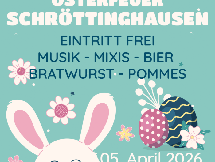 Osterfeuer 2026 in Schröttinghausen Am 05.April 2026 ist es endlich wieder soweit – das traditionelle Osterfeuer der Löschgruppe Schröttinghausen steht an! Wo?Am Feuerwehrgerätehaus, Kuckucksweg 3, 32361 Pr. Oldendorf – Schröttinghausen Wann?Start ist …